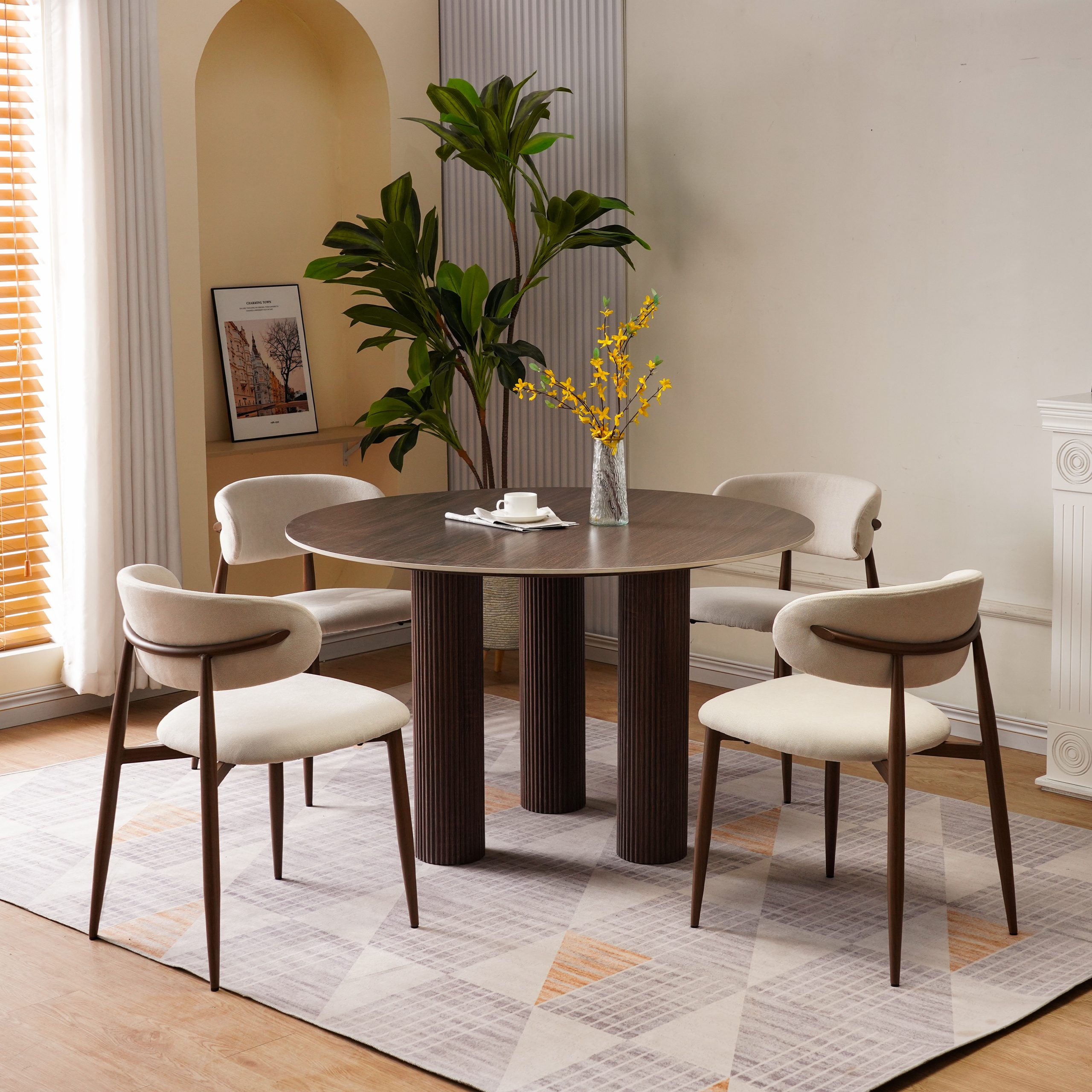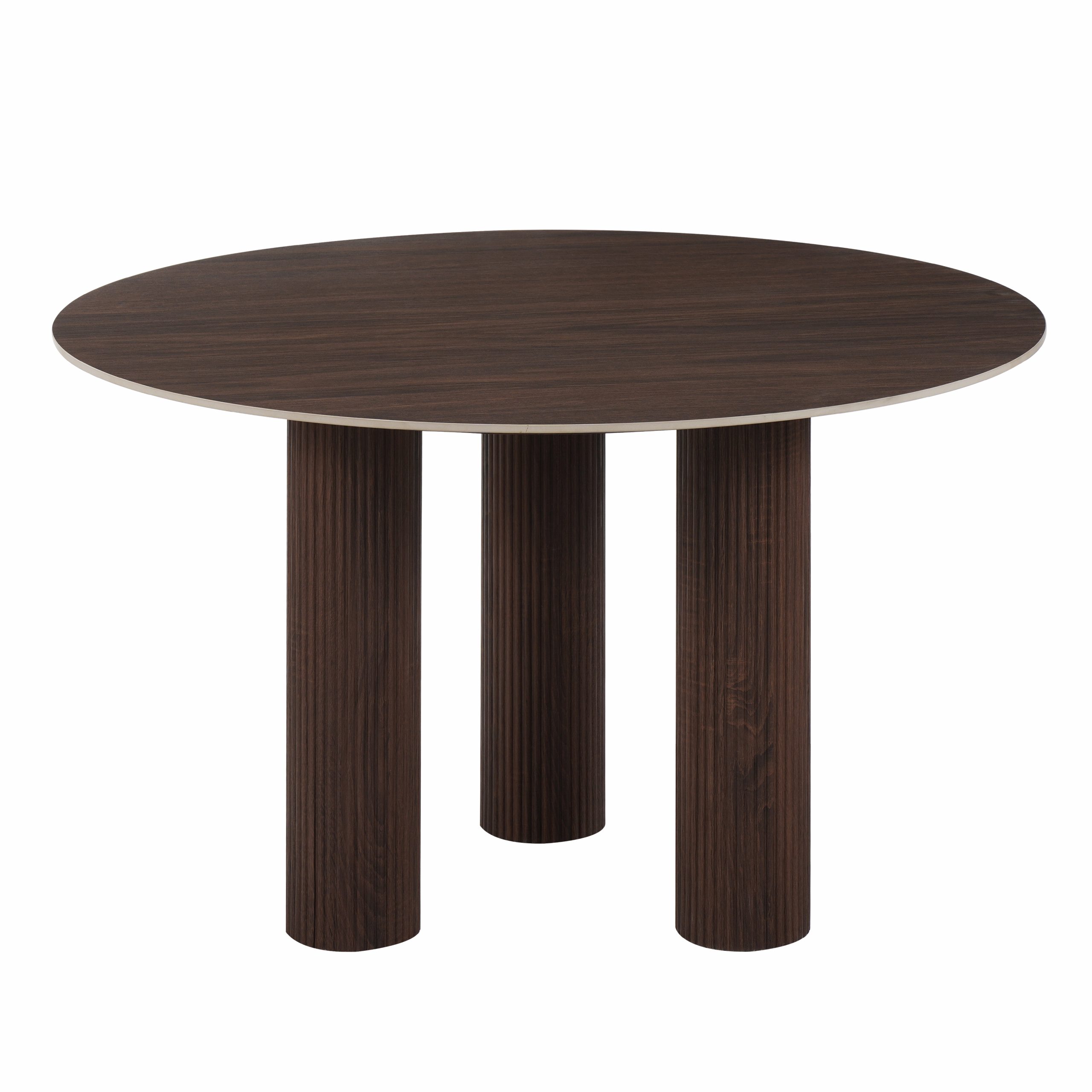 Table à Manger Ronde en Céramique Anti-Rayures – Noyer Effet Chêne Foncé – ANA