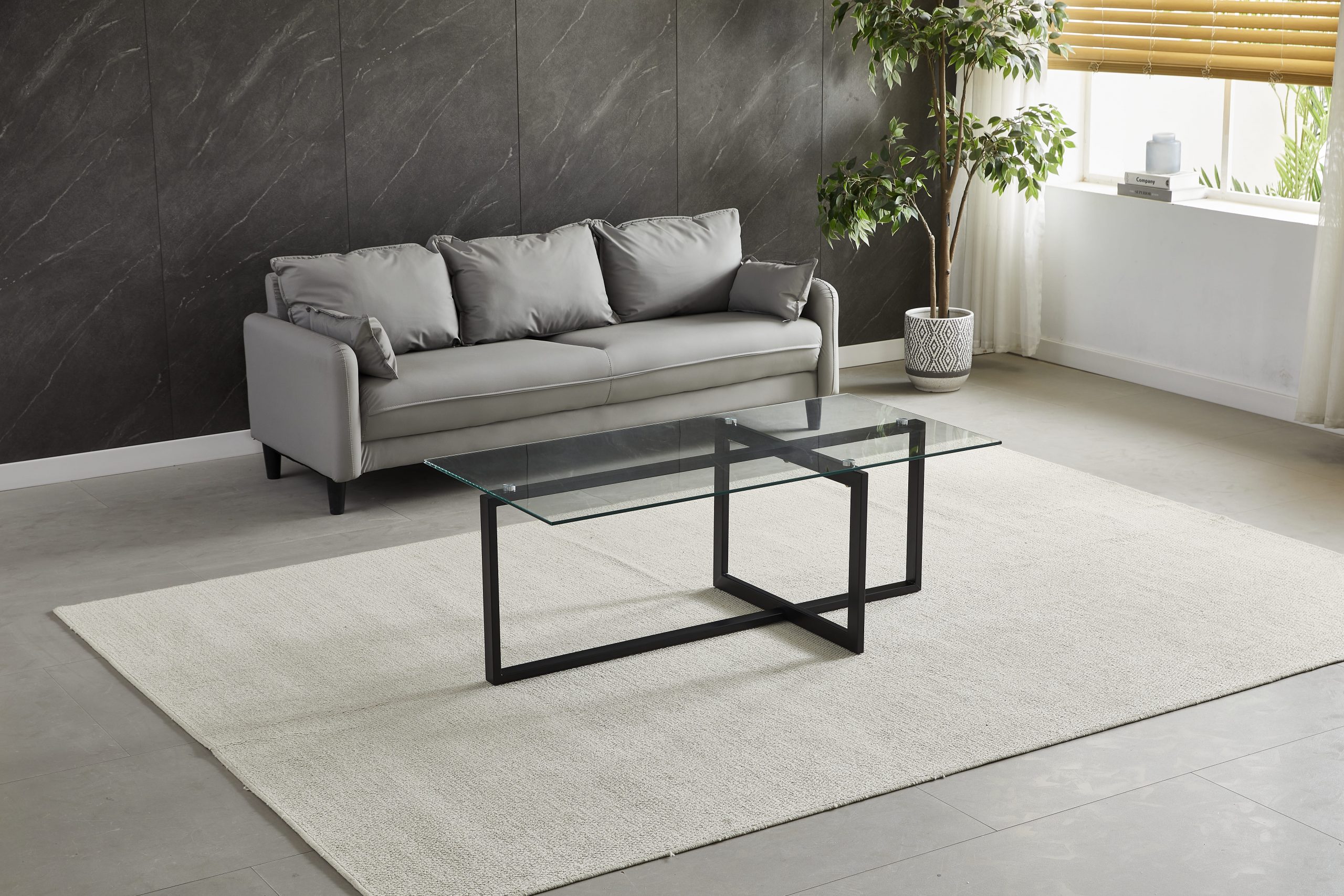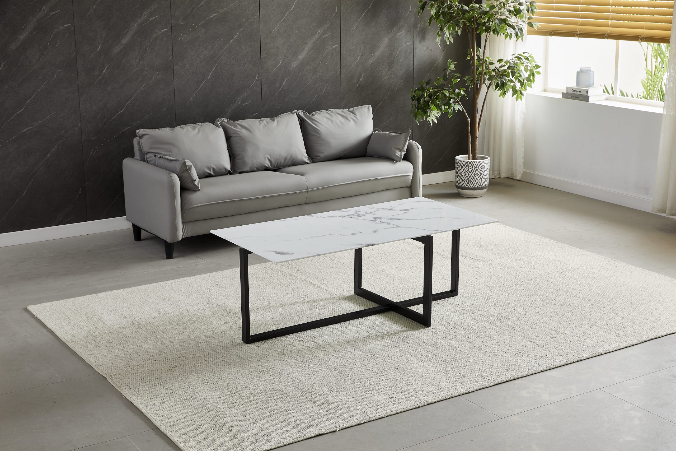 Table basse Rectangulaire - Verre trempé Transparent/Effet Marbre
