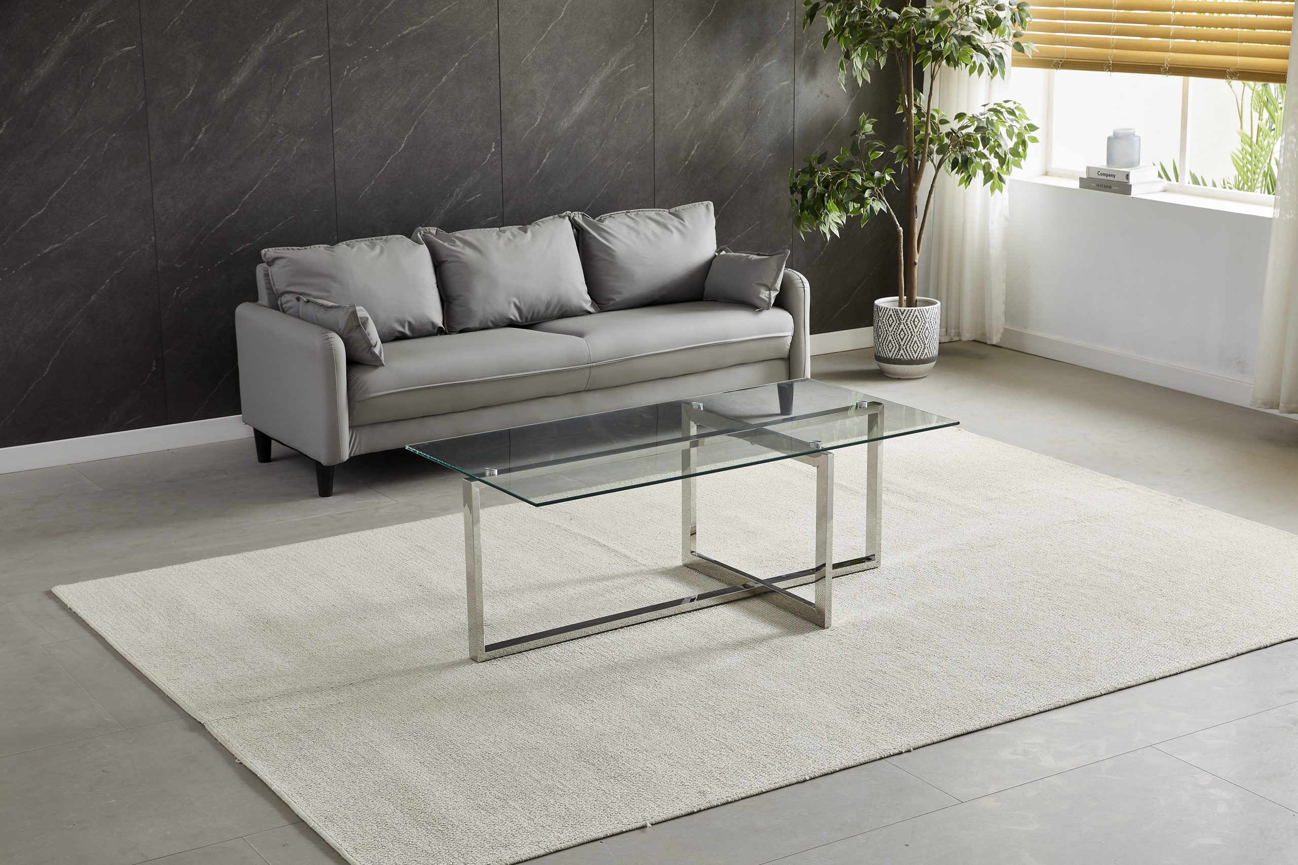 Table basse Rectangulaire – Verre trempé Transparent/Effet Marbre