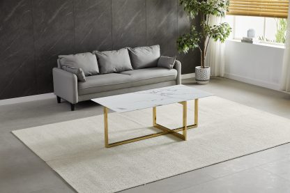 Table basse Rectangulaire – Verre trempé Transparent/Effet Marbre